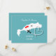 Ein Spaß Save the Date für Paare, die in Kos heiraten, mit einer weißen Silhouette-Karte von Kos auf aquamarin mit süß-roten Lieben-Herzen und so einfach mit Ihren persönlichen Namen und Botschaft anpassen