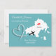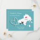 Ein Spaß Save the Date für Paare, die in Skiathos heiraten, mit einer weißen Silhouette-Karte auf aquamarin mit süß-roten Liebe Herzen und so einfach mit Ihren persönlichen Namen und Nachricht anpassen