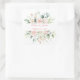 Hochzeitflorale Elegant Rosa Chic Datum Name Quadratischer Aufkleber