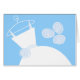 Bridal-Grußkarte mit hübschem Design in Blau- und Weißtönen, mit einem stilisierten Hochzeitskleid auf einem Kleiderbügel, begleitet von einem Bouquet aus Blume. Ein individualisierbares Design für Sie, um mit Ihrem eigenen Text, Bildern und Ideen zu personalisieren.