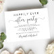 Elegante Eintrittskarte für ein Party nach Ihrer Hochzeitsfeier oder Ihrem Empfang. Die Vorderseite zeigt "Happily Ever After Party" in einer Mischung aus einfacher Typografie und einem stilvollen Kalligrafieschrift mit Swashes. Personalisieren Sie Ihre After-Party Einladung und fügen Sie Ihre Namen in ein signaturähnliches Skript ein.
