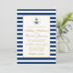 Nautical Wedding Blue Stripes Gold Einladung - Gold Text - Foto Back