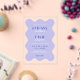 Diese wunderschöne Hochzeitseinladung wird durch eine zarte Wave-Jallop-Grenze gerahmt. Es verfügt über eine ruhige, von Lavendelfeldern inspirierte Farbpalette, die in sanften Lavendeltönen mit sanften Grüntönen und erdigen Farbtönen ergänzt wird. Die spielerischen, aber raffinierten Schriftart tanzen über die Seite, mischen Launen mit Eleganz und ausgewählte, in lebendiges Blau hervorgehobene Worte fügen einen reizvollen Pop der Farbe hinzu. Es ist mehr als nur eine Einladung, es ist der Auftakt zu einer Feier voller Charme und Freude, ideal für Paare, die eine Mischung aus Spaß und Eleganz in einem Design suchen, das sanft von Natur und Liebe spricht.