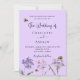 Ein Lavendel, violetter Hintergrund. Mit Bienen dekoriert und Wildblumen in Violett und Rosa gestrichen. Personalisieren und fügen Sie Ihre Namen und die Details.