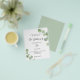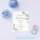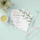 Bitte beachten Sie, dass diese Einladung auf Flyer Papier und sehr dünn ist. Umschläge sind nicht enthalten. Für dickere Einladungen (gleiche Gestaltung) besuchen Sie bitte unseren Shop. Weiße, mit Eukalyptusgrün dekorierte Untergründe. Personalisieren und Ihren Namen und Ihre Zeremonie Details. Schwarze Buchstaben. Zurück: grüner Hintergrund