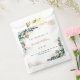 Ein schick weißer Hintergrund. Ein schick weißer Hintergrund. Dekoriert mit grünen Aquarellen Eukalyptusbäumen, Blätter, Grünpflanzen, Imitaten vergoldeten Blätter und goldenen Glitzer Flecken. Personalisieren und fügen Sie die Namen der Braut und Bräutigam, ein Datum und ein Dankeschön Hinweis. Schwarze und goldene Buchstaben.