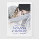 Das Foto Ihres Paares wird gezeigt. Dann wird ein weißes, durchsichtiges Overlay platziert, um sicherzustellen, dass Ihre Hochzeitsdetails sichtbar sind - unabhängig von den Farben in Ihrem Foto. Ihre Namen sind in einem großen, schicken Text geschrieben, um sie zu einem echten Pop zu machen. Save the Date ist in einem kleinen gekrümmten Schriftart oben und Ihr Hochzeitstag und Ort unten geschrieben.