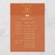 Das Hochzeitsprogramm für Terracotta und Gold beinhaltet die Hochzeitsfeier und den Service. Elegantes Design mit Terrakotta und Goldfarben. Passen Sie den Text auf der Vorder- und Rückseite des Programms an. Großartige Schreibwaren und perfekt für Paare, die Terrakotta als Hochzeitsfarbe benutzen. Verwenden Sie die Vorlage, um Ihr eigenes Terrakotta und Gold Hochzeitsprogramm zu erstellen.