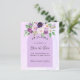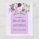 Ein modernes und elegantes Save the Date für eine Hochzeit. Wasserfarbene violette Farbe, lavendelfarbener Hintergrund und ein Bogenrahmen. Mit violetten und violetten Blumen dekoriert. Personalisieren und fügen Sie ein Datum und Namen hinzu. Der Text: Save the Date ist mit einem großen angesagten, handgeschriebenen Stilskript geschrieben. Zurück: Fügen Sie Ihre URL zu Ihrer Hochzeitswebsite für weitere Informationen hinzu. 1 Blatt = 1 Save the Date bedruckte Kante bis Kante.