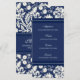 Elegantes Hochzeitsmenü in stilvollem dunkelmarineblau und cremefarbenem klassischem Blumendüsternmuster, das mit Ihren Dinnerdetails abgestimmt werden kann und in einer großen Auswahl an passenden Hochzeitsprodukten erhältlich ist.
