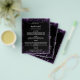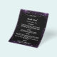 Bitte beachten Sie, dass dieses Menü auf Flyer Papier und sehr dünn ist. Für ein dickeres Menü (gleiche Gestaltung) besuchen Sie bitte unseren Shop. Ein elegantes, glamouröses Hochzeitsmenü. Schwarzer Hintergrund, mit lila Imitat Glitzer, Glitzern. Weißer Text. Personalisieren Sie Ihren Namen, Daten und das Menü und fügen Sie ihn hinzu. Sie können mehr Text hinzufügen, Fotos auf der Rückseite.