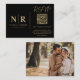 Unsere Black and Gold Wedding Monogram UAWG QR Code Foto Elegant Enclosure Card, der Inbegriff von Eleganz und modernem Komfort. Diese RSVP-Karten wurden mit den wichtigsten Merkmalen klassischer moderner Schrift und minimalistischer Eleganz konzipiert und eignen sich ideal für Paare, die eine Touch der Personalisierung und der Bequemlichkeit für ihre Hochzeit suchen. Mit einem zeitlosen Schwarz-Gold-Farbschema und einem klassischen modernen Drehbuch strahlen diese RSVP-Karten Eleganz und Stil aus. Das minimalistische Design und das personalisierte Hochzeitsmonogramm tragen zu jeder Karte eine Touch von Eleganz bei. Diese RSVP-Karten sind mit einem modernen QR-Code ausgestattet und bieten eine bequeme Möglichkeit für Ihre Gäste, auf Ihre Einladung zu reagieren. Scannen Sie einfach den QR-Code mit Ihrem Smartphone, und sie werden auf Ihre Hochzeitswebsite oder UAWG geleitet, wodurch der UAWG nahtlos und effizient abläuft. Diese RSVP-Karten sind mit einem handschriftlichen Stil und einer bearbeitbaren Vorlage gestaltet und erlauben es Ihnen, sie zu personalisieren, um Ihr Hochzeitstil und Ihren Stil Anzug zu geben. Sie sind der perfekte Weg, um die Antworten Ihrer Gäste in einer modernen und stilvollen Art und Weise zu sammeln. Mit unserer Black and Gold Wedding Monogram UAWG QR Code Foto Elegant Enclosure Card machen Sie RSVPing zu Ihrem Hochzeitsfest. Die perfekte Mischung aus klassischer Eleganz und modernem Komfort.
