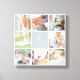 Mit dieser Collage-Leinwand aus Foto mit 8 quadratischen Fotos, die rund um ein pastellgraues Quadrat angeordnet sind und Ihren Anfangs-, Namen- und Hochzeitsdatum tragen, schaffen Sie einen süßen Hochzeitskuchen für Ihren Schreibtisch oder Ihre Zuhause.