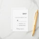 Modern, schlicht, elegante Antwortkarte in Weiß/Schwarz. Passend zu euren Einladungskarten. Editiere dein Produkt in wenigen Minuten.