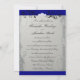 Feiern Sie Ihren Hochzeitstag mit dieser schönen und eleganten Schiefergrau- und Marineblauplakette und Blumenhochzeitseinladung. Diese noble und elegante Hochzeitseinladung kennzeichnet ein vertikales Band, das eine schöne silberne metallische ovale Plakette mit dem herrlichen Blumen- und belaubten Wirbel verankert, der die Ränder zusammen mit schön geschnittenen Diamanten schmückt. Dieser Entwurf hat einen Vintager Artstoff Texturhintergrund mit einer strukturierten Grenze und beschatteten Blumeneiner strudelüberlagerung. Diese Einladungen sind für Hochzeiten, Ruhestands-Partys, Jahrestags-Partys, Abendessen-Partys, Abschlusszeremonien, Geburtstags-Partys, Galas, Weihnachts- und des neuen JahresPartys und mehr perfekt.