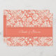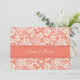 Hochzeitseinladungskarten im eleganten Pfirsich orange und weg vom weißen klassischen Blumendamastmuster. Fertigen Sie diese Einladungen mit Ihren Hochzeitsdetails besonders an. Verfügbar in zusammenpassenden Produkten für die ganze Ihre Hochzeit braucht.