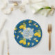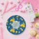 Königliches Blau, mittleres blaues weißes, gelb und grün ist eine neue und starke Kombination der Farben für eine vibrierende, schöne Brautpartypalette.  Leicht besonders angefertigt unter Verwendung der Schablonenfelder für Ihre spezielle Braut. Sauber.  Einfach.  Modern.  Minimalistischer Entwurf für maximale Auswirkung.  Gruppiert sich handgemalte Zitronen, Zitrone, Zitrone blüht und das Blätter, das für einen neuen Landgarten-, rustikalen dennoch eleganten und schönenhochzeits-Empfangs-Dekorentwurf geworfen wird.  Typografieartskript-Kalligraphietitel liest, "unsere Hochzeits-Feier."  Copyright Audrey Jeanne Roberts, alle Rechte vorbehalten.