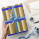 Hochzeits-Gold auf blauer Streifen-Packpapier Geschenkpapier