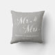 Personalisierter Hochzeits-Herr und Frau graues Weiß-Kissen. Der Hintergrund des modernen und trendy, personalisierten, silbernen Graus, kundengerechtes mit Braut- und Bräutigamnamen im weißem Skript-Schriftart und -hochzeit datieren. Einfacher dennoch eleganter Entwurf ist für Hochzeitsgeschenke, Schatzkissen, Hochzeitstaggeschenke und mehr perfekt. Kissen ist Polyester 100%; Falte frei und bearbeiten leicht waschbares maschinell.