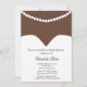 Eine minimalistic, moderne und Chic-Brautpartyeinladung mit einem Hochzeitskleid und einer Perlenhalskette auf brauner Haut.