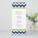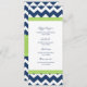 Hochzeitsabendessenmenü im eleganten dunklen Marineblau, in hellem Limonem Grünem und im Weiß mit dem retro Zickzack Zickzackmuster des Spaßes, in kundengerecht mit Ihren Details und in verfügbar in zusammenpassenden Hochzeitsprodukten.