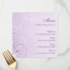 Hochzeitsmahlzeitmenü im eleganten Lavendel-Wirbelsmuster, kundengerecht mit Ihren Details und verfügbar in zusammenpassenden Hochzeitsprodukten.