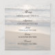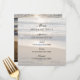Hochzeitsabendessenmenü mit einem schönen Foto der Wellen, die auf dem Strand am Sonnenuntergang zusammenstoßen, vervollkommnen für einen Strand oder eine tropische Hochzeit, kundengerecht mit Ihren Details und verfügbar in zusammenpassenden Hochzeitsprodukten.