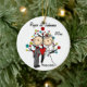 Eine hübsche runde Keramikandenkenverzierung kennzeichnet einen Strichmännchenehemann und -Ehefrau, die ihr erstes Weihnachten zusammen als verheiratetes Paar haben! Fügen Sie leicht Ihre Namen und Datum laufendem Jahr auf diesem niedlichen Strichmännchenpaar mit Weihnachtsbaum-Entwurfsverzierung hinzu. Macht eine große Geschenkidee!