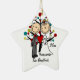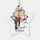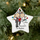 Eine hübsche sternförmige Keramikandenkenverzierung kennzeichnet einen Strichmännchenehemann und -Ehefrau, die ihr erstes Weihnachten zusammen als verheiratetes Paar haben! Fügen Sie leicht Ihre Namen und Datum laufendem Jahr auf diesem niedlichen Strichmännchenpaar mit Weihnachtsbaum-Entwurfsverzierung hinzu. Macht eine große Geschenkidee!
