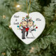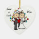 Ein hübsches Herz formte Keramikandenken-Verzierungseigenschaften ein Strichmännchenehemann und -Ehefrau, die ihr erstes Weihnachten zusammen als verheiratetes Paar haben! Fügen Sie leicht Ihre Namen und Datum laufendem Jahr auf diesem niedlichen Strichmännchenpaar mit Weihnachtsbaum-Entwurfsverzierung hinzu. Macht eine große Geschenkidee!