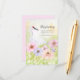 Diese Hochzeits-Party-Registry-Beilagekarte enthält ein handgemaltes Aquarell eines eleganten Whooping Crane, umgeben von sanften rosa, violetten und pfirsichfarbenen Anemonen. Als Symbol für Hingabe und Neuanfang verleiht die romantische botanische Kunst der Feier eine warme und bedeutungsvolle Note.