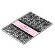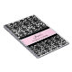 Gewundene Hochzeitsplanerzeitschrift mit elegantem hellrosa und schwarzem klassischem Blumendamastmuster, mit dem kundengerechten Text, zum Ihres eigenen Namens und Mitteilung zu addieren. Vervollkommnen Sie für organisierende Hochzeitspläne und Details, ein großes Geschenk, damit die Braut ist.