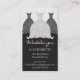 Schwarze, weiße und Platin-Hochzeits-Planer-Visitenkarte mit stilisierten Spitzen- Hochzeitskleider- und -brautjungfernkleidern. Raum auf der Rückseite für irgendeine zusätzliche Information. Fertigen Sie mit Ihrem eigenen Text und Papierwahl besonders an. Ursprüngliche Illustration durch pj_design. Diese Spitzen- Hochzeitskleider werden mit Lovebirds, Reben und Beeren verziert. Der Hintergrund hat ein hübsches Damastmuster. Groß für einen Hochzeitsplaner, einen Brautberater, einen Kleiderhersteller, einen Designer oder einen Event-Planer.