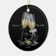 Unsere erste Weihnachtsverzierung kennzeichnet ein stilvolles Paar Champagnergläser mit einem Set des Hochzeitsring-Sets auf einem schwarzen Hintergrund! Personifizieren Sie mit Ihren Informationen und Datum und Sie sind alles Set, zum zu gehen! Wunderbares datiertes Andenkengeschenk für Ihr erstes Weihnachten und ein großer Zusatz zu Ihnen Weihnachtsverzierungssammlung.