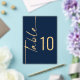 Navy Blue & Gold Hochzeit Akryllische Tischnummer. Tischnummer ist in einem Set rotiert Skript auf der verlassen Seite. Personalisieren Sie jede Nummer und jeden Gast und fügen Sie jeden in Ihren Warenkorb.