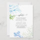 Trendy Marine und White Oean Thema Strand verschoben Hochzeitseinladung mit Meerfernn, Algen und Seestern.