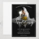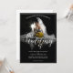 Hochzeitsankündigung mit einem Bild einer verträumten Braut, die mit einem gelben Strauß von Blume im Penumbra sitzt - klassisch. Namen, Text, Speicherort und Datum können in der Vorlage angepasst werden.