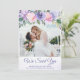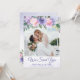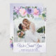 Moderne periwinkle lila und rosa Aquarellfarben Blumen Hochzeitsankarte, mit einem sehr leichten peri gewaschenen Hintergrund. Passen Sie Namen, Daten und Informationen an.
