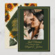 Die exquisite Hochzeitsankündigung mit Sonnenblumen ist eine ideale Wahl für Paare, die eine rustikale, ländliche Touch suchen. Diese bezaubernde Hochzeitsankündigung zeigt die Schönheit der Sonnenblumen, die mit bezaubernden Waldgrün und Imitaten goldenen Details betont werden. Auf der Kartenvorderseite finden Sie Ihr individuelles Foto für eine persönliche Touch und Dankeschön. Die üppig grüne Waldfarbe verleiht dem Ganzen eine Touch von rustikalem Charme, die an üppige Wiesen und die Ruhe der Landschaft erinnert. Die zarten Imitate Goldakzente bringen ein Element der Eleganz und des Glamours mit sich und heben das Gesamtdesign auf, um ein wirklich faszinierendes Ensemble zu schaffen. Dieses Produkt ist Teil unserer Sonnenblumen Hochzeitsfeier Grün und Gold rustikale Hochzeit. Gehen Sie zu dieser Sammlung, um alles auszuwählen, was Sie brauchen, um eine wunderbar geschlossene Hochzeit. Bearbeiten Sie Text und Foto von der Produktseite oder verwenden Sie das Entwurfstool, um Schriftart-Stile oder -Farbstile zu ändern.