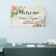 Hochzeitsbanner-Vorlagen - Vintage Aquarellfarben, rosa Blume und elegante Streichlichter auf rustikalem weißem Wash Soft Wood Texture Hintergrund. Ein perfektes Design für Ihren großen Tag! Alle Textstile, Farben, Größen können an Ihre Bedürfnisse angepasst werden.