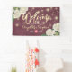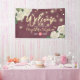 Begrüßung Willkommensbanner Vorlagen - Elegante weiße, hübsche Hydrangea-Blume und String Lights auf Burgundy Red Background. Ein perfektes Design für Ihren großen Tag! Alle Textstile, Farben, Größen können an Ihre Bedürfnisse angepasst werden.