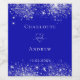Ein königsblauer Hintergrund mit eleganten Imitaten silber Glitzer Staub. Personalisieren und fügen Sie Namen und Ihr Hochzeitstermin.