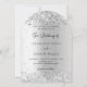 Für eine moderne Hochzeit. Ein Imitat silber aussehender Hintergrund mit Konfetti. Personalisieren Sie Ihre Namen und Details und fügen Sie diese hinzu.