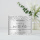 Ein modernes und elegantes Save the Date für eine Hochzeit. Ein Imitat silberer Hintergrund mit Imitat Glitzer. Glitzern. Personalisieren und fügen Sie ein Datum und Namen hinzu. Der Text: Save the Date ist mit einem großen angesagten, handgeschriebenen Stilskript geschrieben.