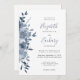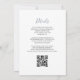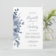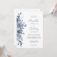 Der links Rand dieser romantischen Hochzeitseinladung ist mit einem Blumenstrauß in Aquarelltönen mit staubblauen Blumen und Pflanzen geschmückt. Der anpassbare Text kombiniert Handschrift, Copperplate und kursiv Schriftart in staubblau und kohlegrau auf weißem Hintergrund. Die Rückseite bietet Platz für Hochzeitsdetails auf einem soliden, weißen Hintergrund, zusammen mit einem QR-Code können Gäste scannen, um Ihre Website und UAWG zu besuchen, was die Kosten für den Druck und Versand separater RSVP-Karten rette.