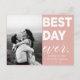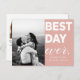 Vielen Dank für diese moderne "Best Day Ever" Hochzeit Vielen Dank Postcard. Weiße Schrift auf farbigem Hintergrund. Dieses Dankeschön-Foto kann für eine Vielzahl von Veranstaltungen wie Hochzeiten, Brautpartys, Babyduschen, Geburten und Abschlüsse genutzt werden. Anpassen durch Hinzufügen Ihrer bevorzugten Fotos.Anpassen Sie die Hintergrundfarbe, indem Sie auf "Weiter anpassen" klicken