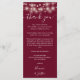 Eine elegante burgundische Hochzeitsfeier bedankt sich bei der Empfang-Karte mit hübschen Saitenlichtern. Personalisiert mit Ihrem besonderen Dankeschön Nachricht Set in stilvollen Typografie. Ein besonderes Dankeschön für Ihre Gäste. Entwickelt von Thisisnotme©