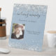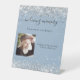 Ein staubblauer Hintergrund mit Imitaten, silbernen Glitzern. Fügen Sie ein Foto und einen Namen hinzu.