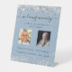 Hochzeitsdenkmal in dunkelblauem Foto Sockelschild