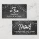 Behalt deine Gäste in der Schleife über alle deine Hochzeitsdetails mit diesen hübschen, rustikalen, gründlichen Gastgeschenk Hochzeit Einlegekarten. Diese hübschen Karten spiegeln einen eleganten, lässigen Stil wider. Hübsche Textüberlagerungen wurden mit einem modernen, fett gedruckten, lässigen Skript-Schriftart erstellt. Auf der einen Seite steht "" und auf der anderen nur "Details". Verwenden Sie die Vorlagenfelder, um diese Gehäusekarten mit Ihren persönlichen Daten anzupassen. Mit "Visitenkarten-Technologie" bedruckt wird die praktische Größe leicht behalten. Verschicken Sie diese mit Ihren traditionellen Mailings und behalt ein paar Runden, um mit denen zu teilen, die ein oder zwei extra brauchen! Die Oberfläche ist mit einem subtil strukturierten schwarzen Chalkboard-Muster bedeckt, das mit hellen weißen, glänzenden Feenlichtern besticht. // 89 // Designed by Melody Watson for Paper Muserie.